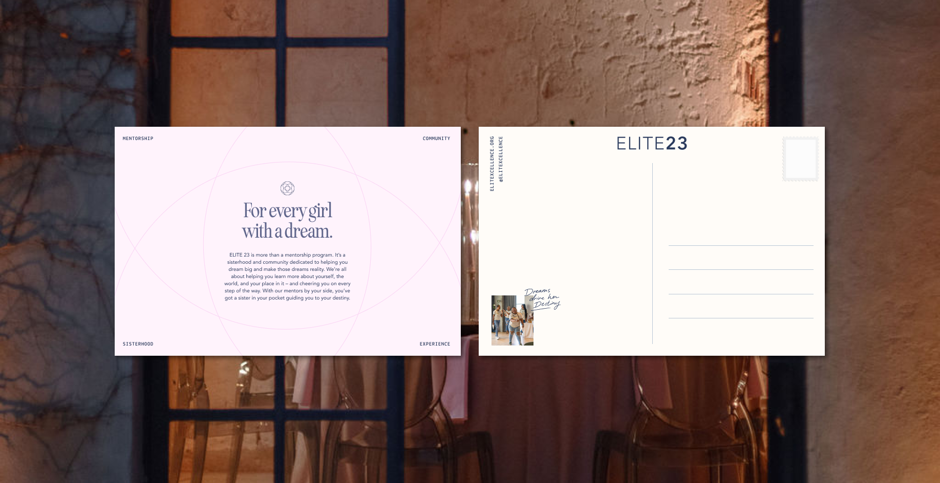 Esther partnered with Elite23—a Chicago-based mentorship and development program for inner-city girls—to lead a recruitment campaign, For Every Girl with a Dream. Rooted in Elite23’s mission to spark passion, nurture excellence, and create lasting impact, the refreshed campaign’s strategy and visual identity were crafted to mirror the limitless potential of the girls they serve. Inspired by the idea that “these girls have big dreams, they just need to see the possibilities,” Esther shaped a brand that feels bright, expansive, and alive with possibility.